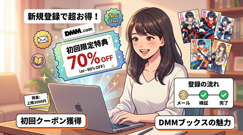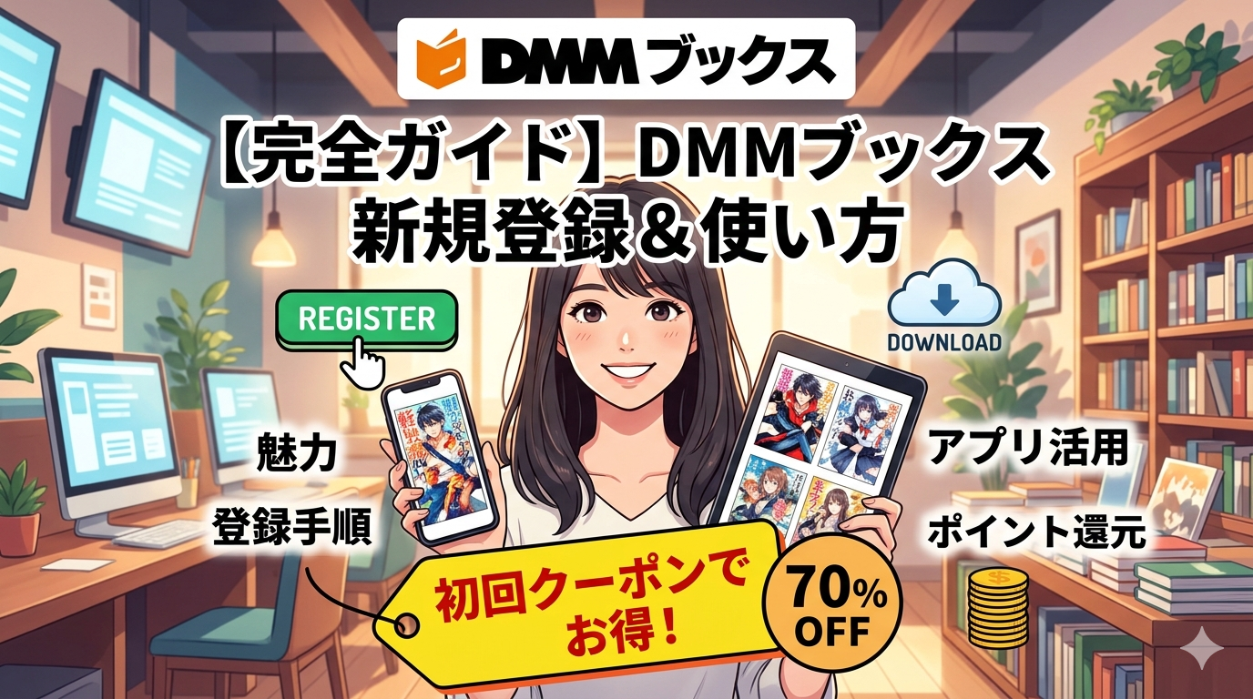 「登録は難しくないの?」「アプリは使いやすい?」「本当にお得なの?」といった疑問をお持ちの方に向けて、本記事ではDMMブックスの新規登録方法から、基本的な使い方、そして最大の魅力であるお得なキャンペーン情報までを徹底的に解説します。
