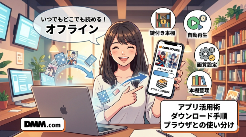 DMMブックスはブラウザと専用アプリを使い分けることで、より快適な読書体験が得られます。