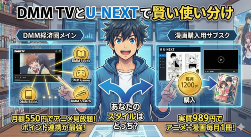- DMMブックスを使っているならDMM TV、それ以外ならU-NEXTがおすすめ