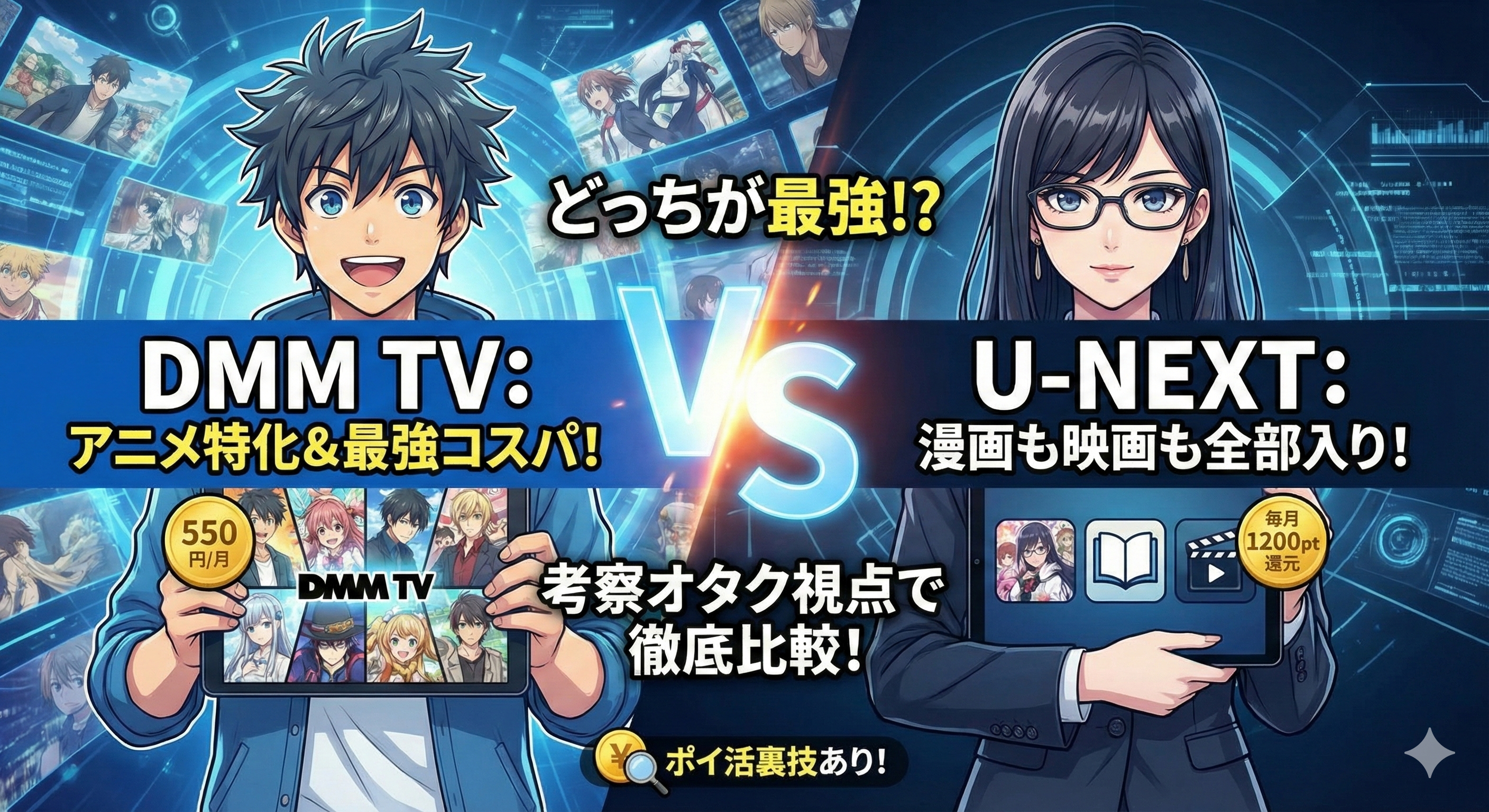 そこで今回は、月額料金や作品数といった基本的なスペック比較はもちろん、「考察ブロガー」や「声優オタク」というディープな視点から、両サービスを徹底的に解剖します。