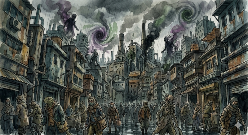 - 異常な環境の正体:空から降る「黒い雨」や空間の歪みは、魔法使いが放出した「ケムリのカス」によるもの。