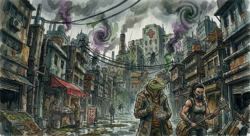 - 巨大ゴキブリやゾンビなど、危険生物が蔓延る生活環境