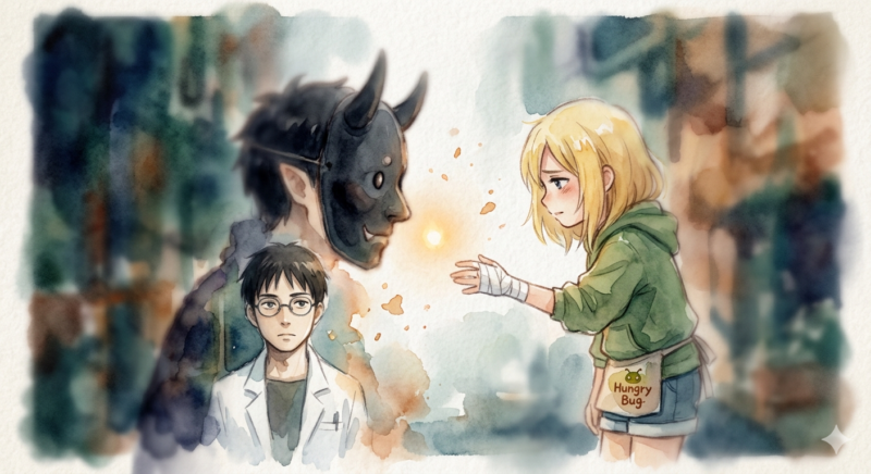その中で、主人公カイマンの頼れる相棒として、そして定食屋「空腹虫(ハングリーバグ)」の店主として明るく振る舞うニカイドウ。