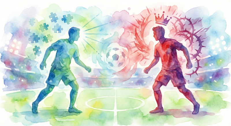 | 役割 | バランサー兼フィニッシャー。 味方の良さを引き出しつつ、最後に合わせる。 | ゲームマスター兼エース。 フィールド全体を支配し、味方すらも自分のゴールのための駒として使う。 |