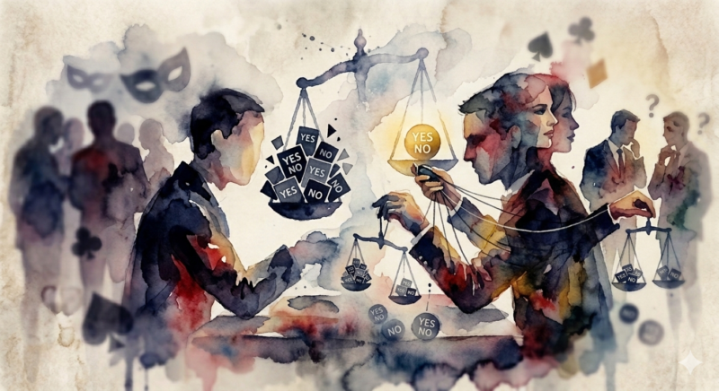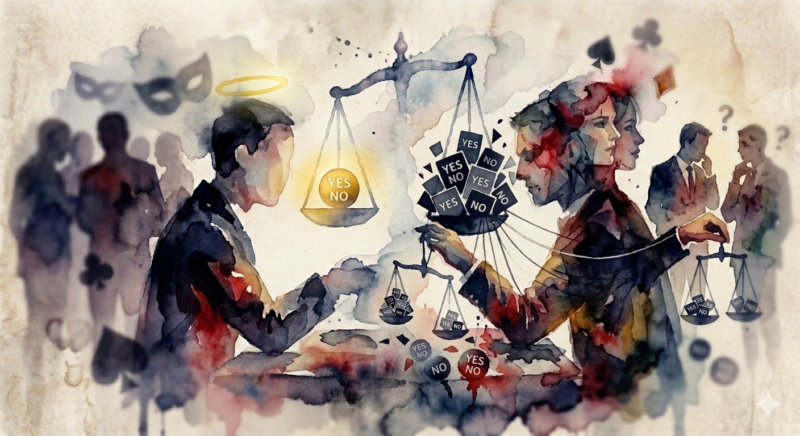 物理的な強制力ではなく、相手の疑心暗鬼と欲望を利用して、相手自身に間違った選択の引き金を引かせる。