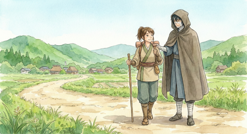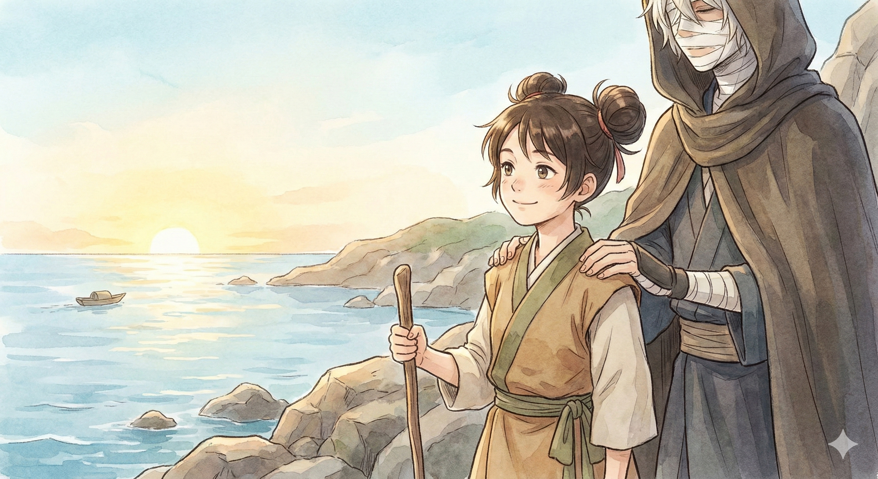 - エピローグでは、士遠と共に諸国を旅する姿が語られている