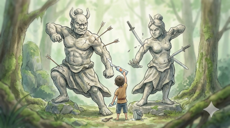 - 神話的モチーフ(阿吽・狛犬)から読み解く原作者の意図