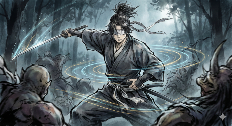 盲目でありながら最強の剣技を誇り、ダジャレ好きというお茶目な一面を持ちながら、誰よりも深い哀しみを背負う男。