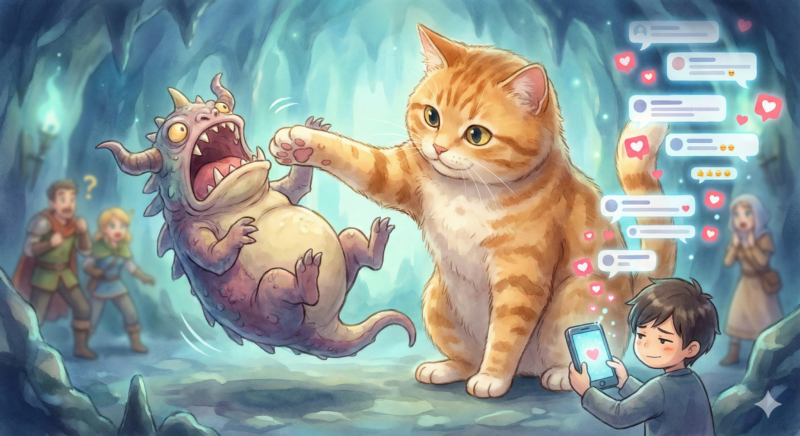 「巨大な猫」「ダンジョン」「配信」という、現代ファンタジーのトレンドを全部乗せしたような設定ですが、その中身は驚くほどハートフルで、そしてスカッとする爽快感にあふれています。