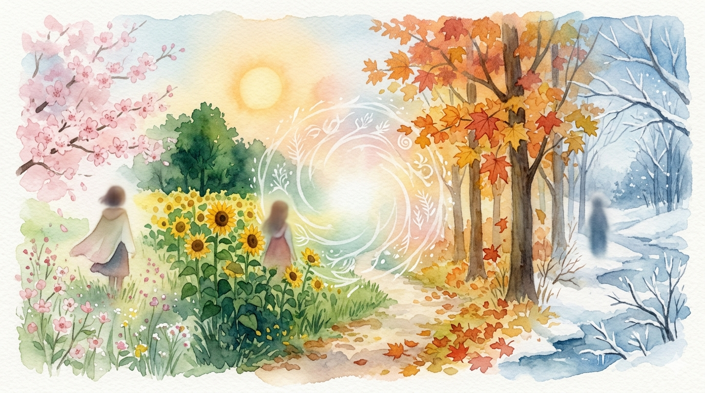 やがて大地の願いによって「夏」と「秋」も誕生し、美しい四季が完成したとされています。