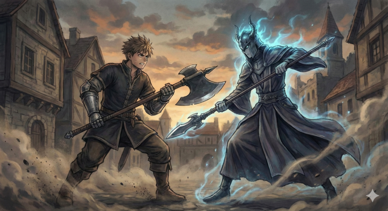 この戦いの最大の特徴であり見どころは、何と言っても「斧使い同士」の真っ向勝負であるという点です。