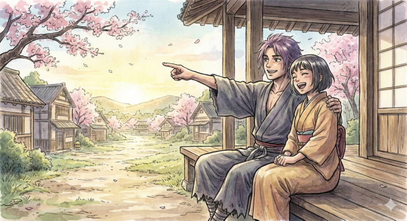 • その様子を、老いた士遠が縁側で穏やかに見守っている