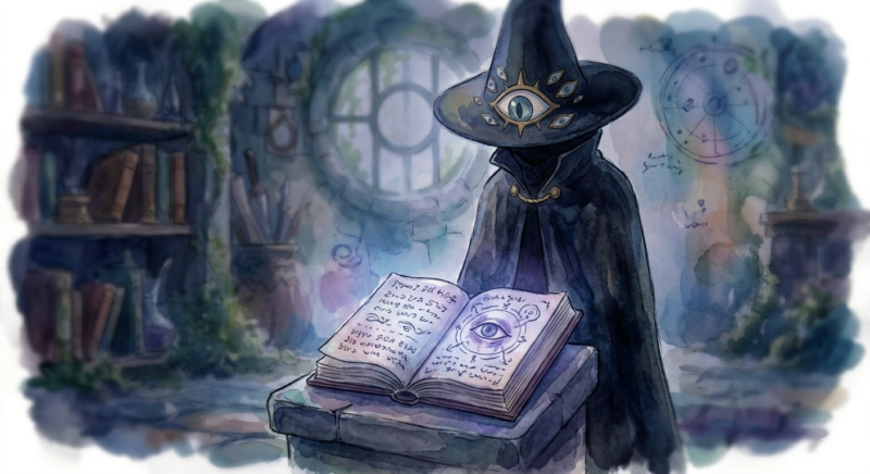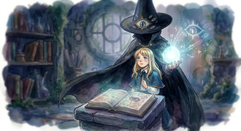 この異名が何を意味するのかは明確にされていませんが、魔法社会(とんがり帽たちの世界)を監視し、真実を見通そうとする強い意志の表れなのかもしれません。